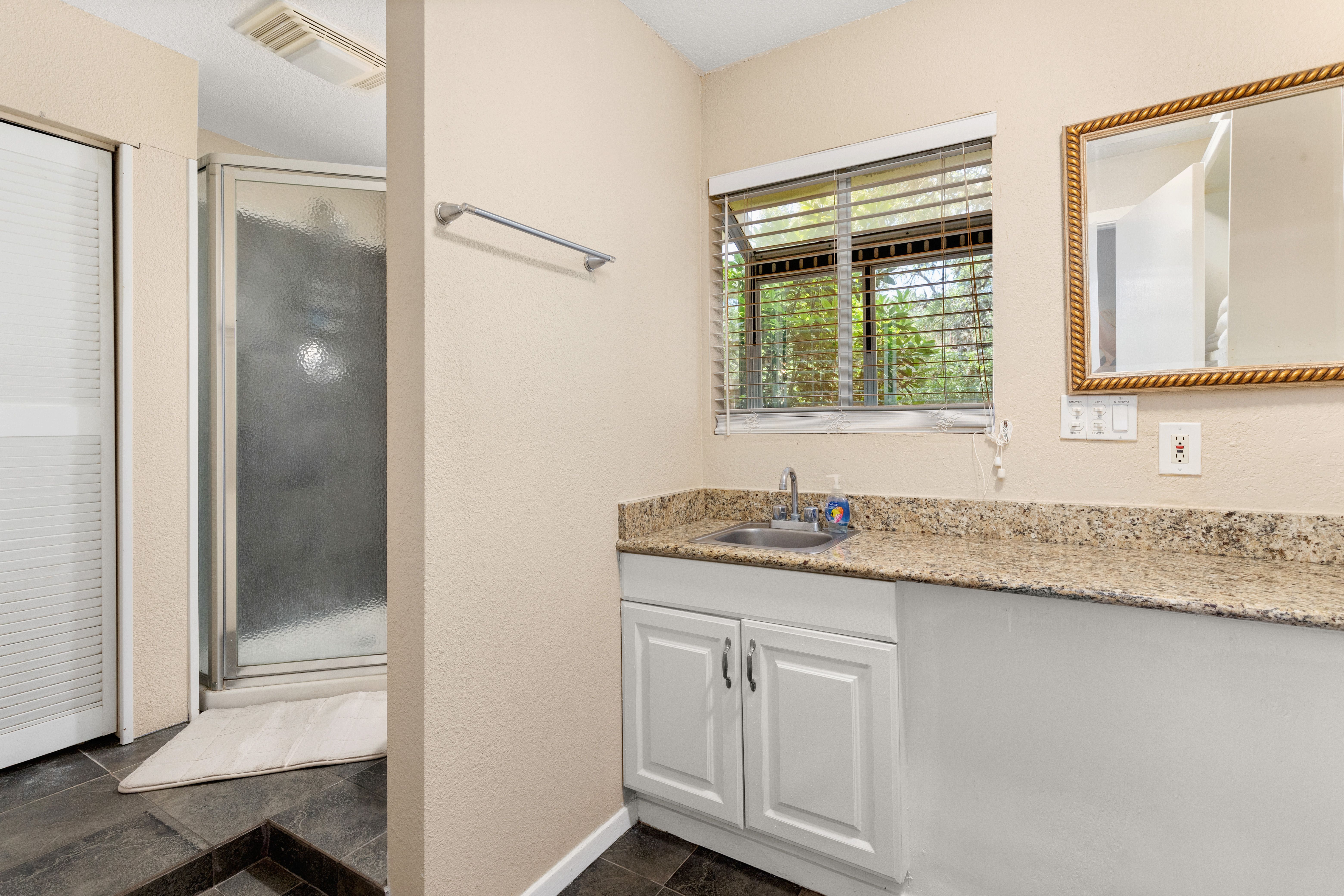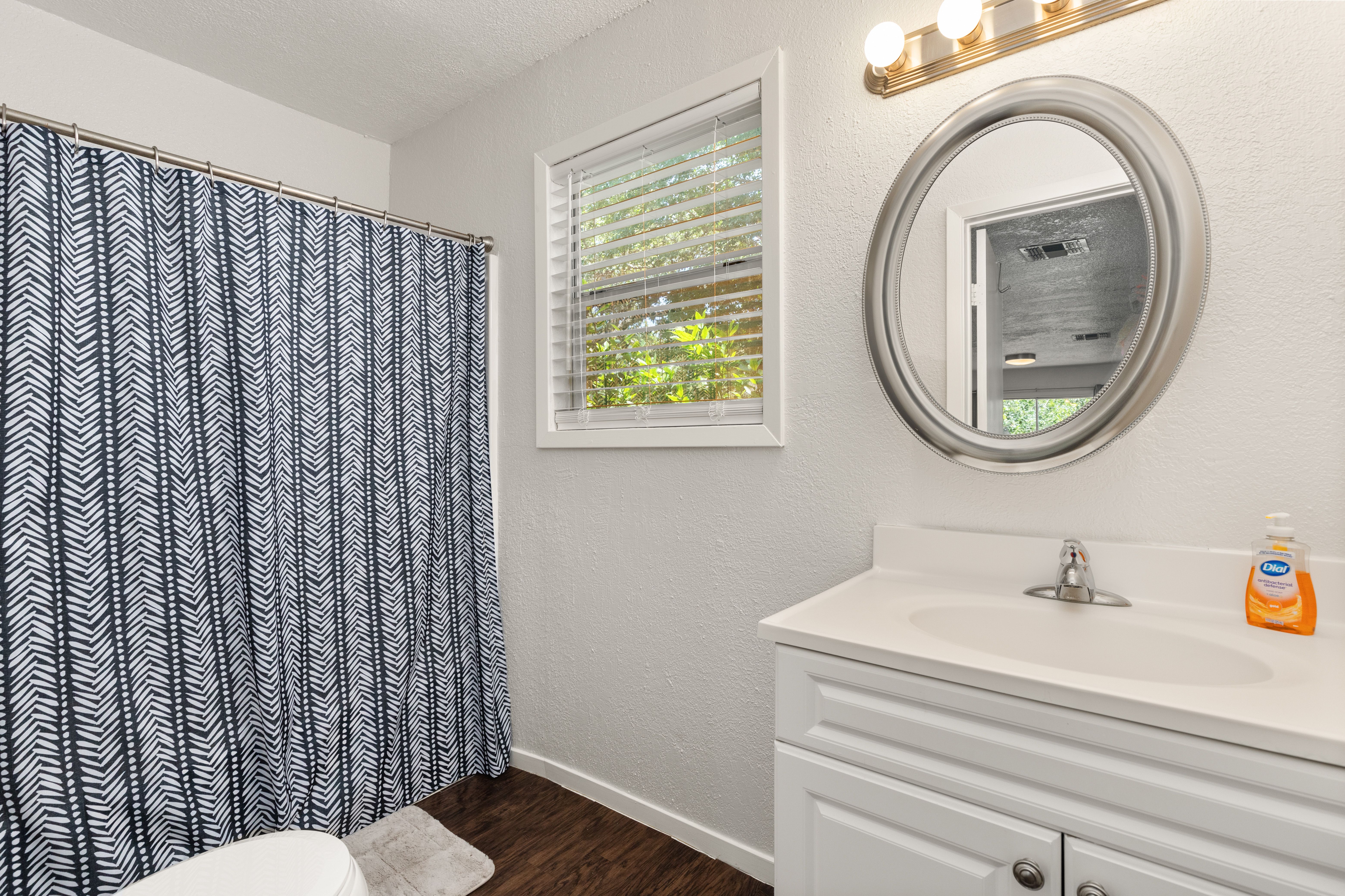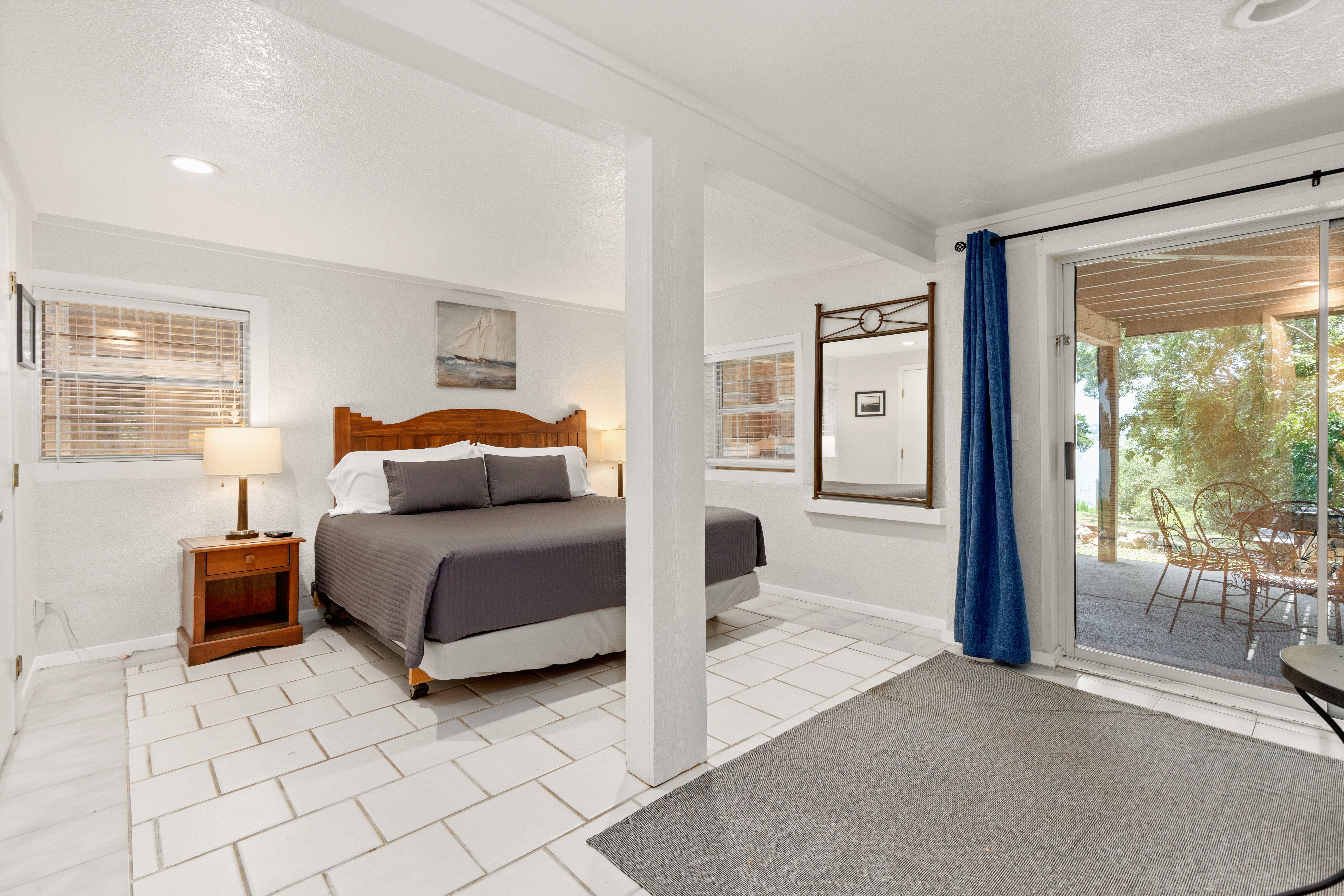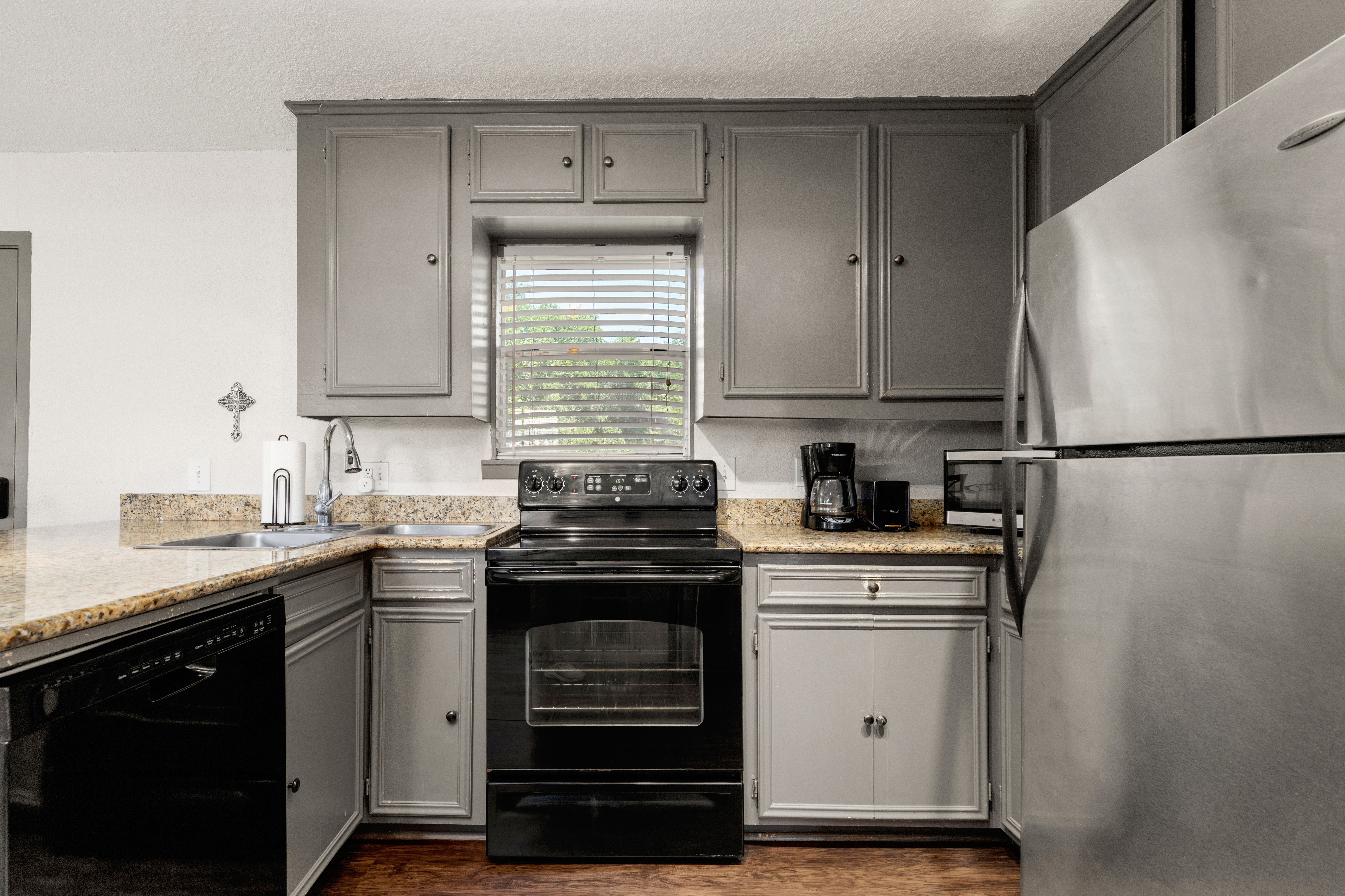 The home is multi-level, with one set of stairs that are steep, and another set that is more manageable. As you enter through the main door, you'll find yourself in the main living area, which includes a living room, kitchen, large deck with a grill, and a bedroom with a queen-sized bed, as well as one bathroom. Down one set of stairs, you'll find two additional bedrooms and the laundry area, with one bedroom featuring a king-sized bed that opens out to the lower deck with the hot tub. The other downstairs bedroom has a full-sized bed. Continue up a half set of stairs to find the bathroom for these two bedrooms, which includes a stand-up shower. The master bedroom is located upstairs and boasts a king-sized bed, with a master bathroom that features a jetted bathtub. The master bedroom also has a patio door that leads out to the main level, providing easy access to the living area and kitchen.